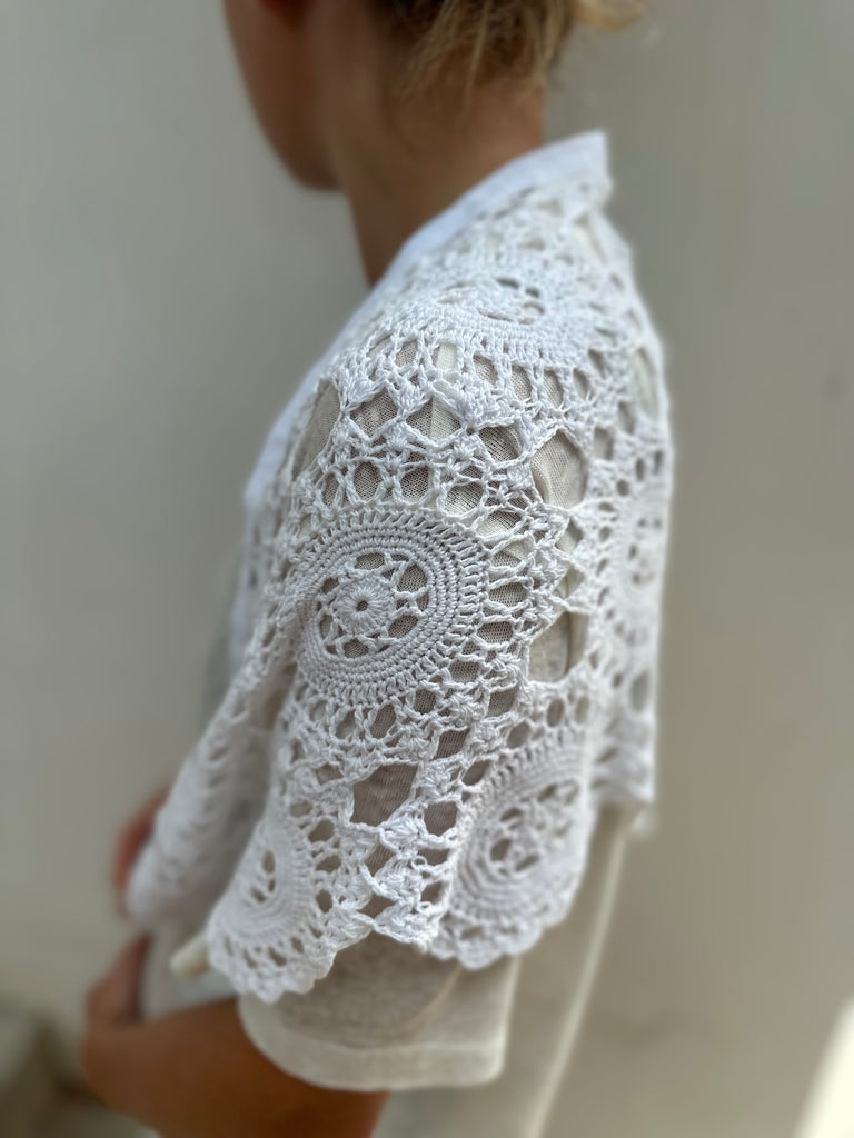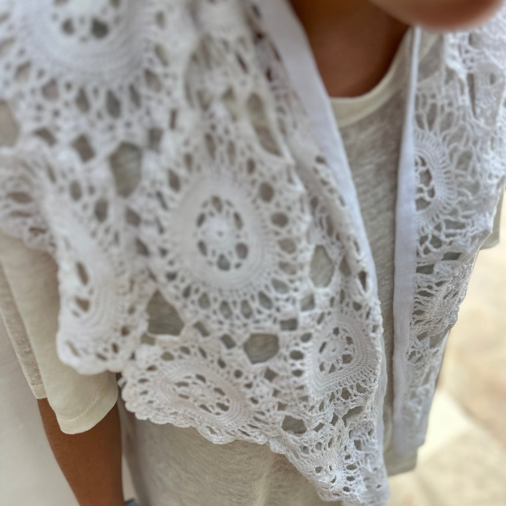Handmade from lace off-cuts once used in our recycled kaftans, each piece is handcrafted with care no two are quite the same.