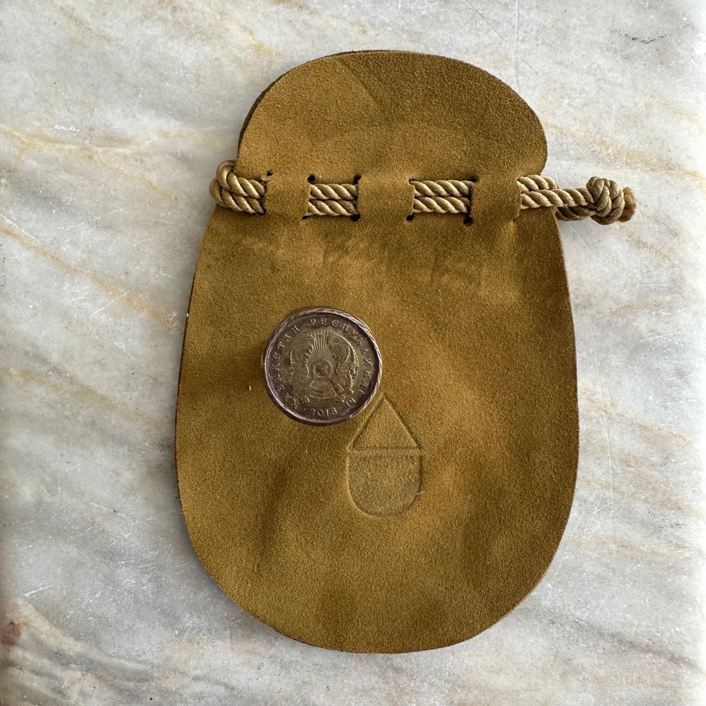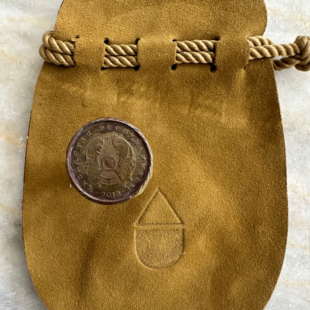 This piece is crafted from a 5 Tenge coin of Kazakhstan, featuring the national coat of arms with the Shanyrak and winged horses, and is ring size T.